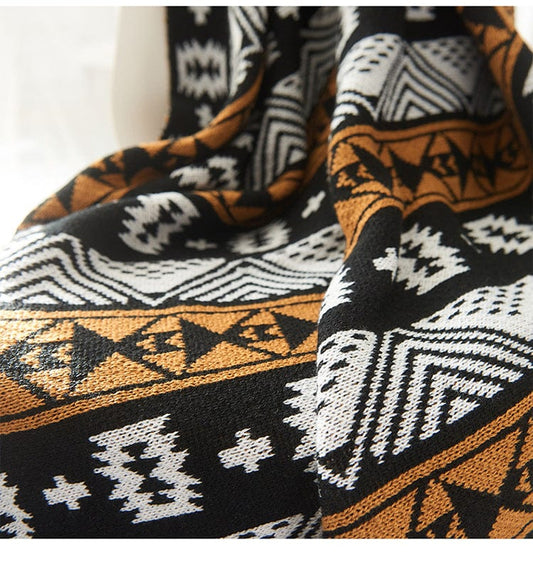 Plaid Laine Tricotée Noir Léger - Élégance et Confort